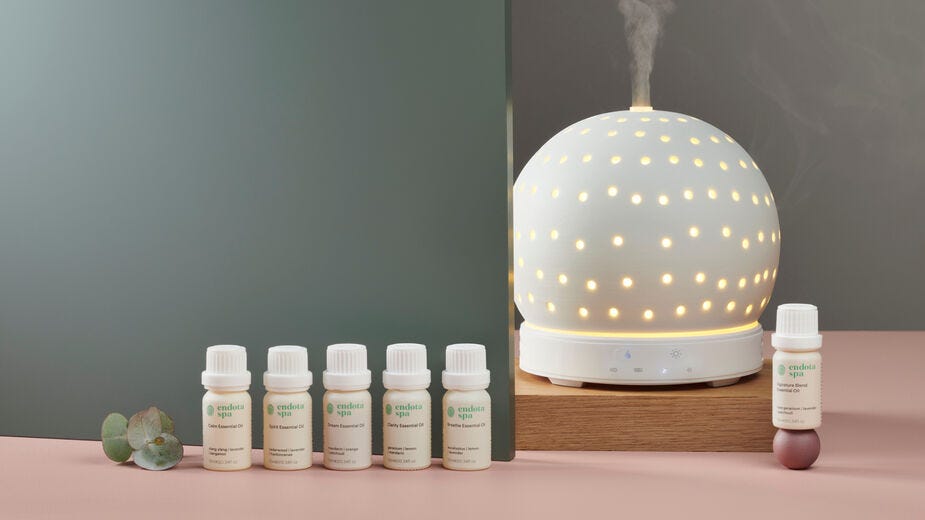 Aromatherapy offers all kinds of benefits – to your mood, your space and your overall wellbeing. Our ceramic, ultra-sonic Oil Diffuser makes it easier for you to enjoy all of those benefits. With two timer settings, you can choose to fill your space with the aroma of your favourite endota essential oil for two or four hours – with the diffuser automatically turning itself off once the minimum water level is reached.